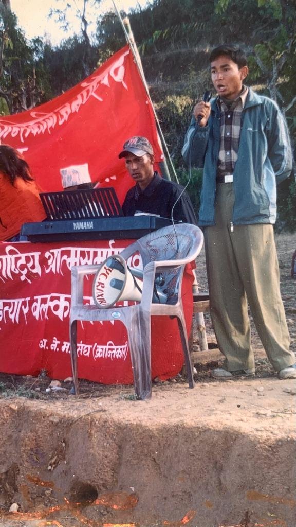 Started full-fledged student politics at the age of 13 from Durga Madhyamik Vidyalaya. He was elected and appointed as the Ikaai Committee Adhyaksha. While the given photo is not from that exact moment, but it is from around the moments clicked with Rajan Dahal and other party cadres in Rautahat District.