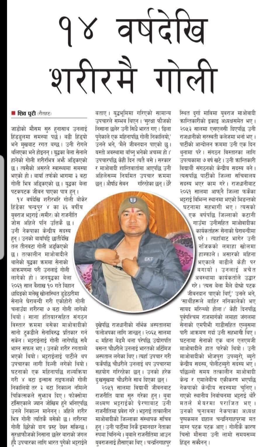 On a sudden fight between the Maoist Cadres and the military under the King, Bhattarai was shot with 7 bullets. While 4 of those bullets were removed from his body, 3 couldn't be removed due to issues of complication. Despite in a fatal situation, Bhattarai was able to be back on his feet and in mainstream politics again within 1.5 months.