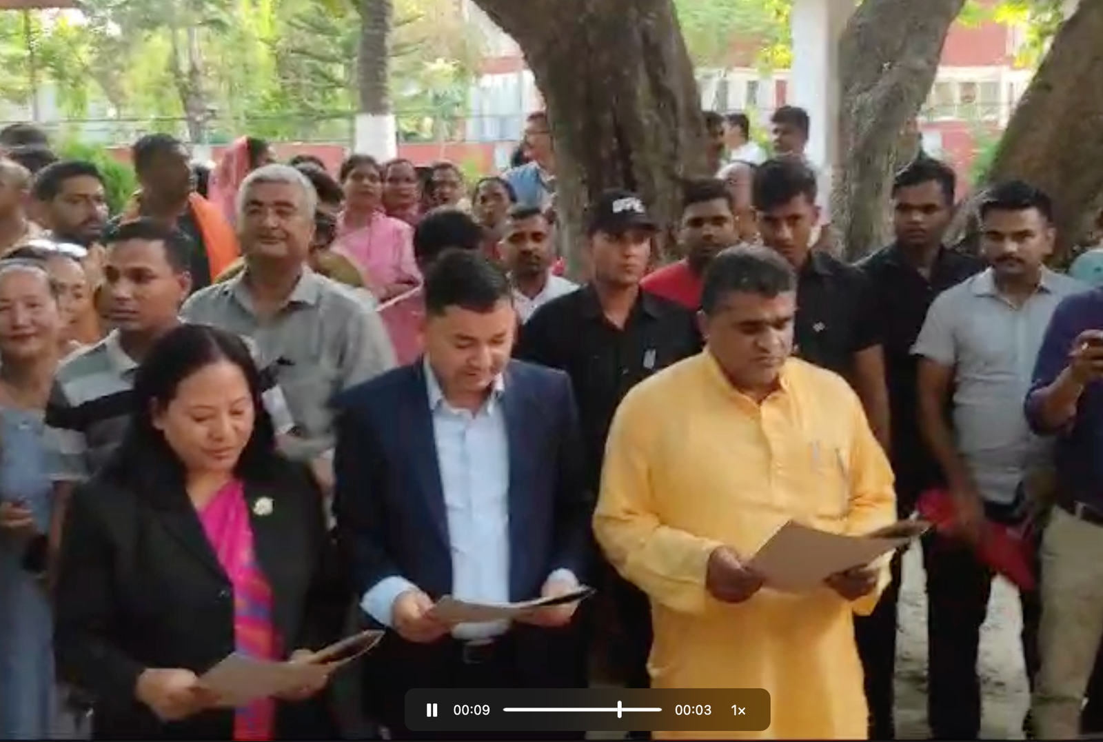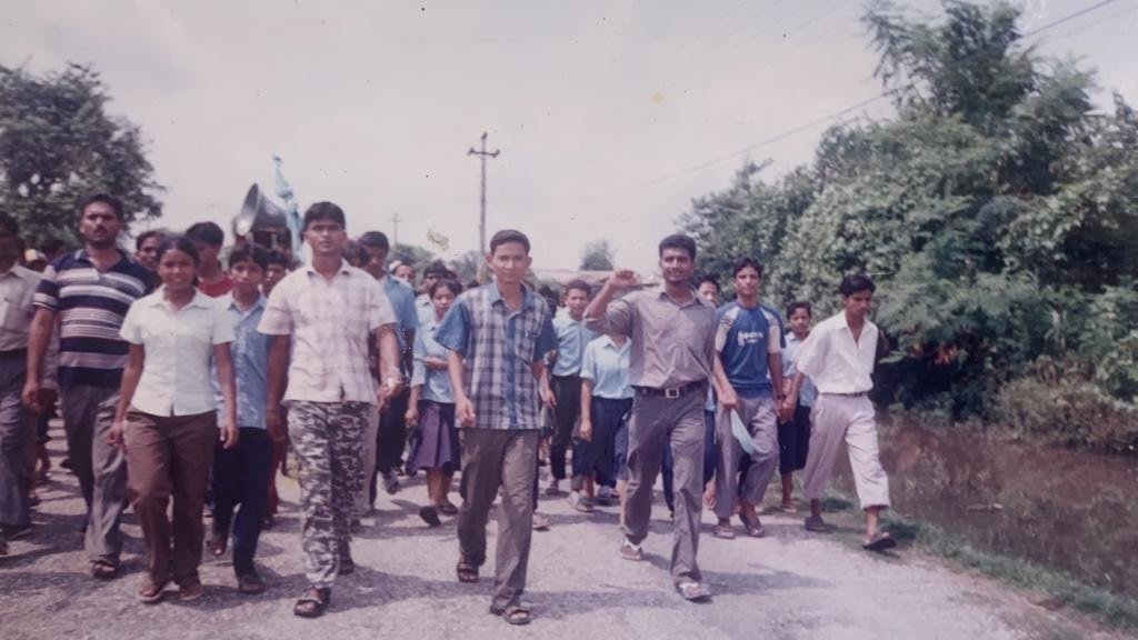 Started full-fledged student politics at the age of 13 from Durga Madhyamik Vidyalaya. He was elected and appointed as the Ikaai Committee Adhyaksha. While the given photo is not from that exact moment, but it is from around the moments clicked with Rajan Dahal and other party cadres in Rautahat District.